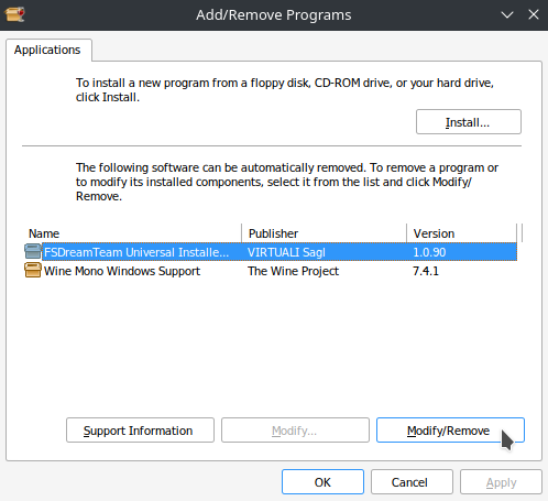 This will open up a window where you can uninstall other addons/applications you have installed for Flight Simulator